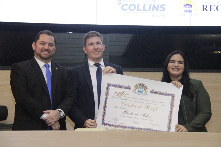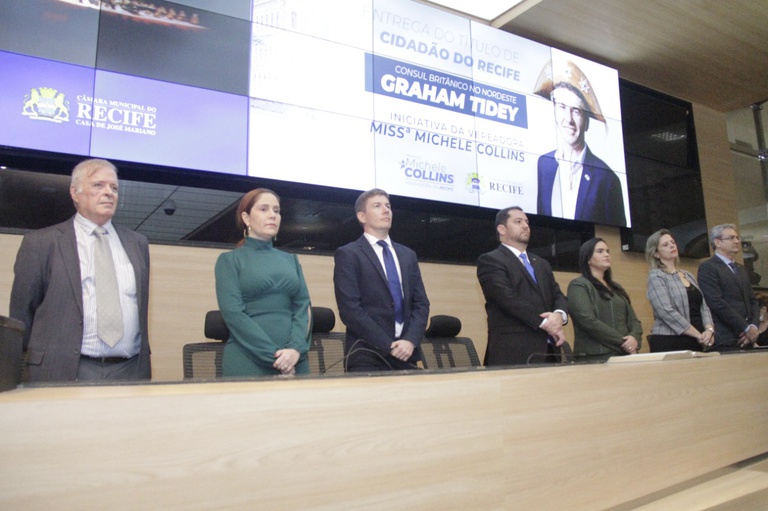 Reunião Solene: Título de Cidadão do Recife ao cônsul-geral do Reino Unido no Recife, Graham Tidey, de autoria da Comissão Executiva e entregue pela vereadora Michele Collins