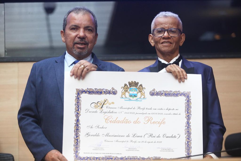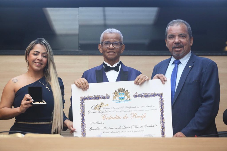 Reunião Solene: Título de Cidadão do Recife ao empresário Geraldo Maximiano de Lima (Rei do Omelete), promovida pelo vereador Hélio Guabiraba. Fotos: Guga Matos
