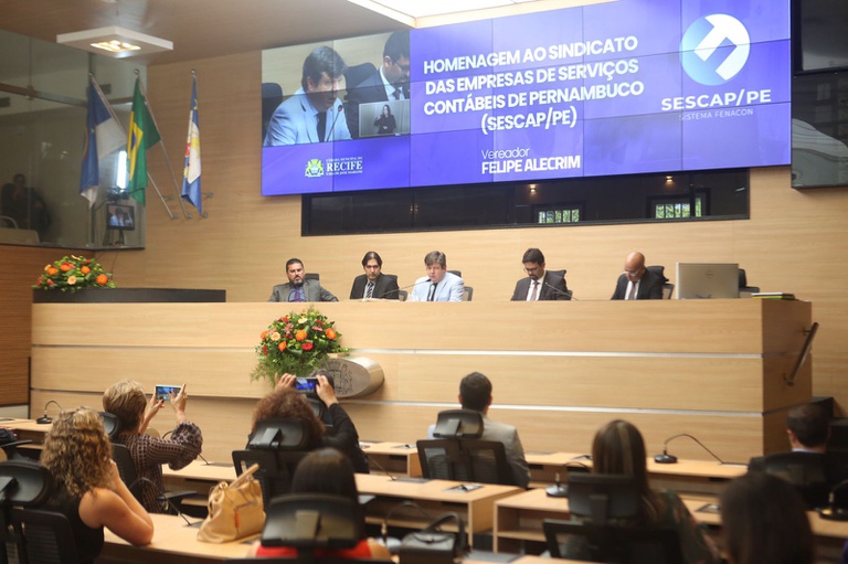 Reunião Solene: Homenagem ao Sindicato das Empresas de Serviços Contábeis de Pernambuco (SESCAP/PE), promovida pelo vereador Felipe Alecrim - Fotos: Guga Matos