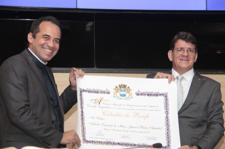 Reunião Solene: Título de Cidadão do Recife para o Padre Arlindo Laurindo de Matos Júnior, promovida pelo vereador Alcides Cardoso. Fotos: Carlos Lima