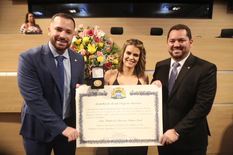 Reunião Solene: Medalha de Mérito Olegária Mariano para Ana Paula Vilaça, chefe do gabinete do Centro Histórico do Recife, promovida pelo vereador Marco Aurélio Filho. Fotos: Guga Matos