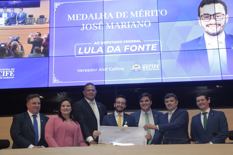 Ao iniciar o seu pronunciamento na tribuna, o vereador Alef Collins destacou que a Medalha de Mérito José Mariano tem como objetivo dar destaque a pessoas que impactam diretamente o Recife. “Quando a gente fala de saúde pública e das vidas das pessoas, Lula da Fonte tem esse olhar e, por isso, a gente hoje pode compartilhar esse momento tão importante com você. Sempre fazendo a boa política, fazendo o que a política nos permite fazer, que é o bem ao próximo", ressaltou. "E quando a gente fala do bem, a gente sempre tem que estar acompanhado de boas pessoas. E eu tenho a certeza de que você é alguém fiel e que cumpre a palavra. Isso você aprendeu de forma contundente com o seu pai, Eduardo da Fonte”.